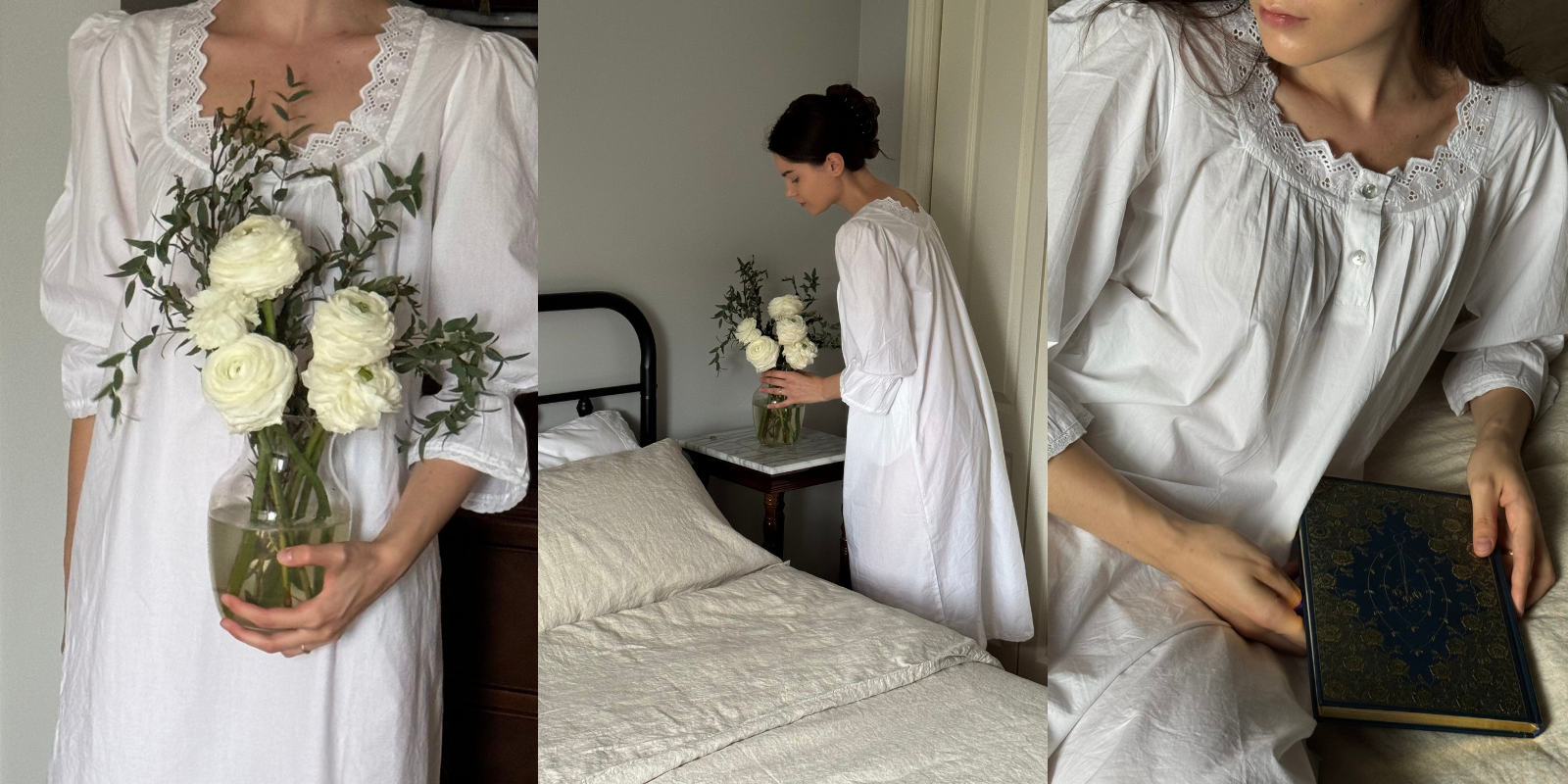 Each design is a tribute to heritage craft and old-world beauty. Whether it’s a hand-drawn floral print or a delicate pintuck, our details whisper of times past, of slower days and softer ways of living. These are garments meant to be loved deeply and worn often—quietly exclusive, and unmistakably romantic.